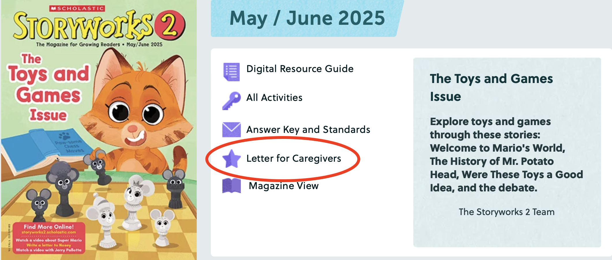 We realize how vital the school-to-home connection is, and our goal is to make it easier for you to build that connection, so we’ve created letters for you to share with your students' families. These letters introduce parents and familes to Storyworks 2. They provide parents and families with an easy way to send home your classroom password, so families can read the digital issue and navigate the website. Every letter is available in English and Spanish. We also created a version for you to send to parents and families if you use Google Classroom or Clever in English and Spanish.